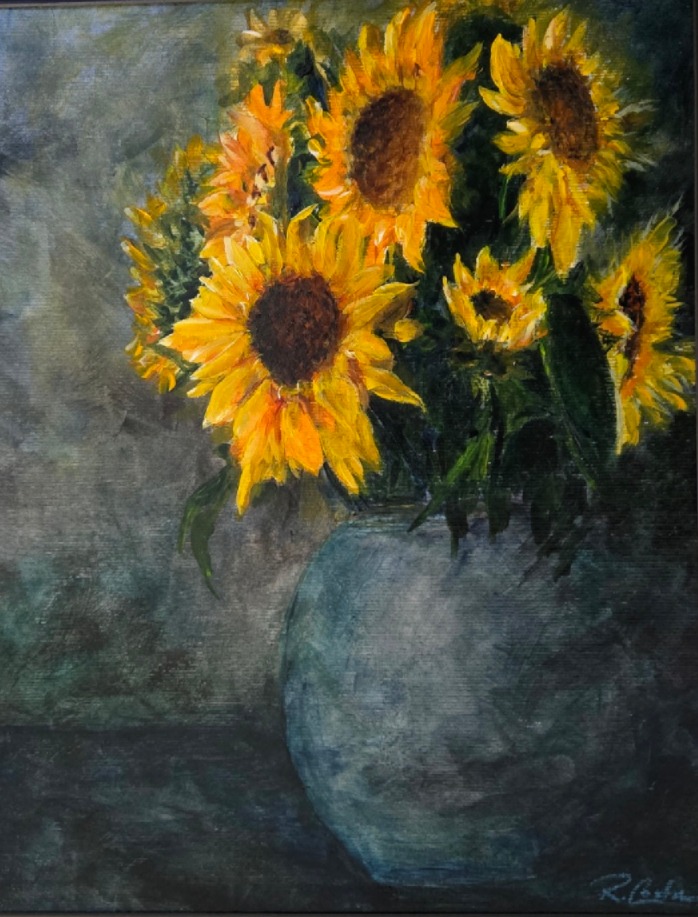 Sunflowers in a Blue Vase